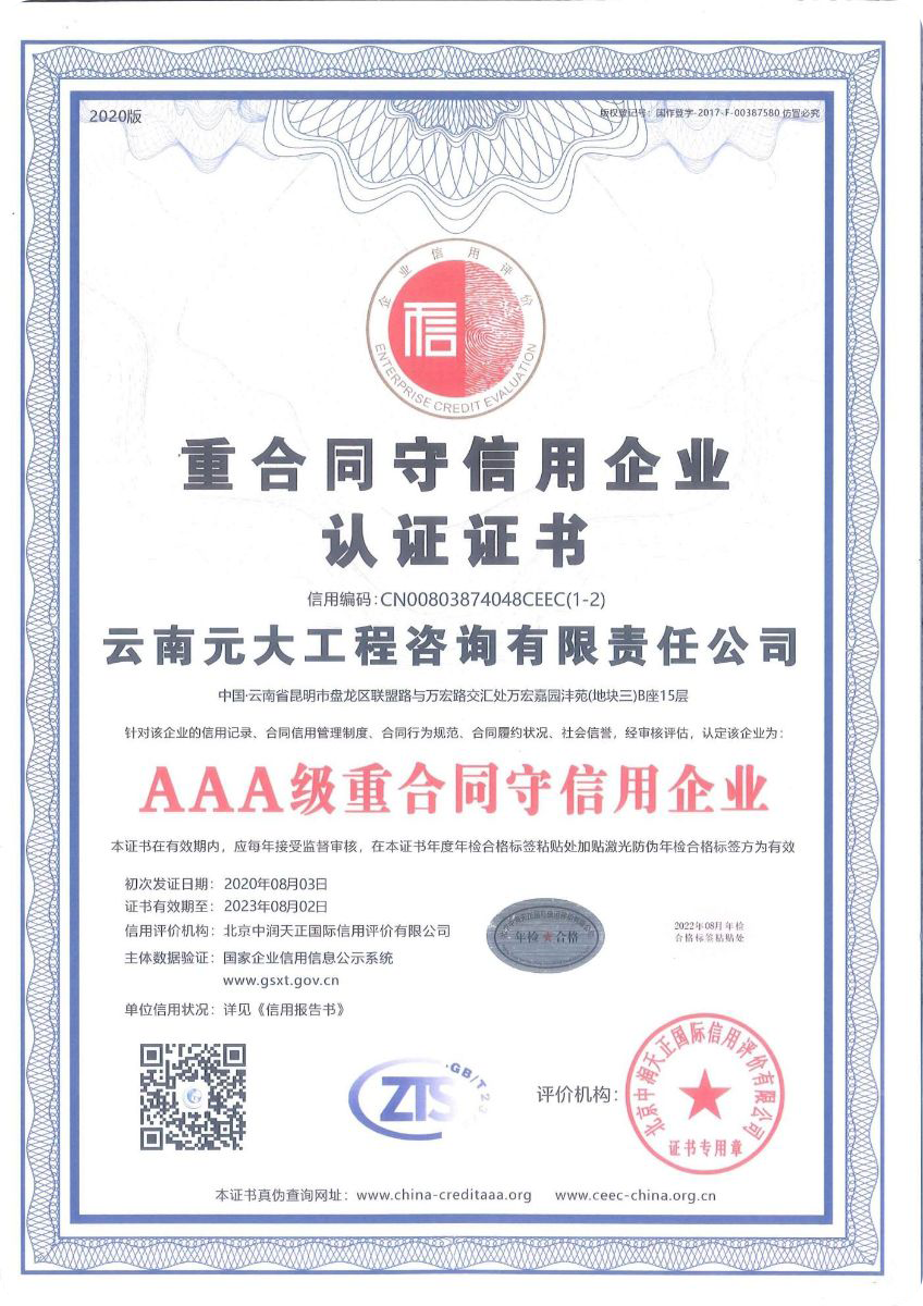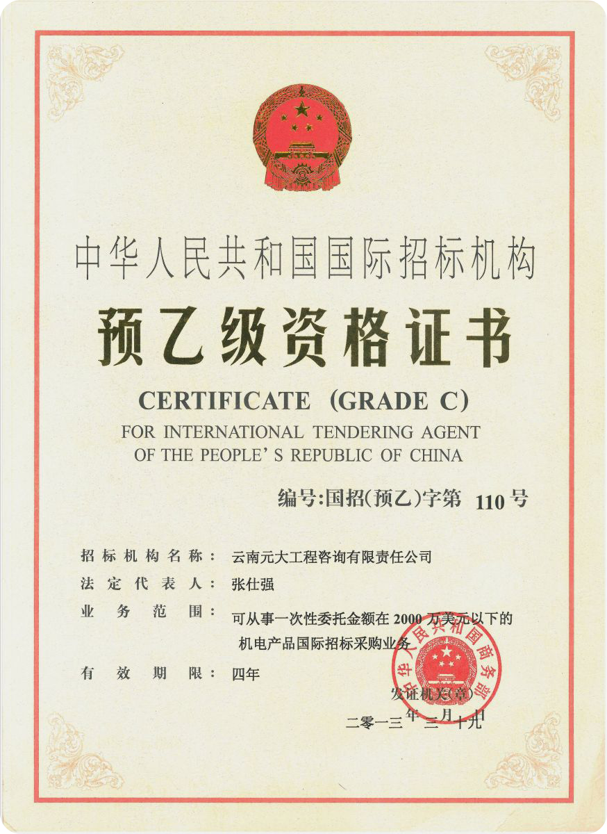 公司是云南省招標(biāo)投標(biāo)行業(yè)協(xié)會(huì)會(huì)長單位,現(xiàn)為云南省住建廳信用評(píng)級(jí)招標(biāo)代理機(jī)構(gòu)AAA級(jí)單位。公司先后榮獲住建部頒發(fā)的“工程招標(biāo)代理機(jī)構(gòu)甲級(jí)資質(zhì)證書”、財(cái)政部頒發(fā)的“政府采購代理機(jī)構(gòu)甲級(jí)資格證書”,并在財(cái)政部及中國政府采購網(wǎng)“政府采購代理機(jī)構(gòu)名單”登記備案、獲得國家發(fā)展改革委頒發(fā)的“中央投資項(xiàng)目招標(biāo)代理機(jī)構(gòu)甲級(jí)資格證書”、商務(wù)部頒發(fā)的“國際招標(biāo)機(jī)構(gòu)預(yù)乙級(jí)資格證書”、機(jī)電產(chǎn)品國際招標(biāo)電子交易平臺(tái)頒發(fā)的“機(jī)電產(chǎn)品國際招標(biāo)電子交易證書”、國家國防科技工業(yè)局頒發(fā)的“軍工涉密業(yè)務(wù)咨詢服務(wù)安全保密條件備案證書”。公司已通過ISO9001:2015質(zhì)量管理體系認(rèn)證、ISO14001:2015環(huán)境管理體系認(rèn)證、ISO45001:2018職業(yè)健康安全管理體系認(rèn)證。納稅信用評(píng)價(jià)已連續(xù)三年被評(píng)為A級(jí)......